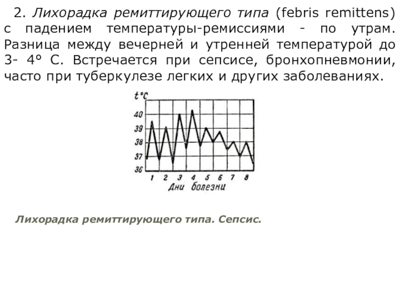 Слайд 202. Лихорадка ремиттирующего типа (febris remittens) с падением температуры-ремиссиями - по