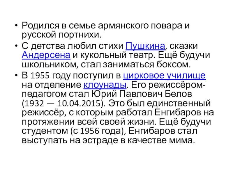 Презентация, доклад на тему Леонид Енгибаров