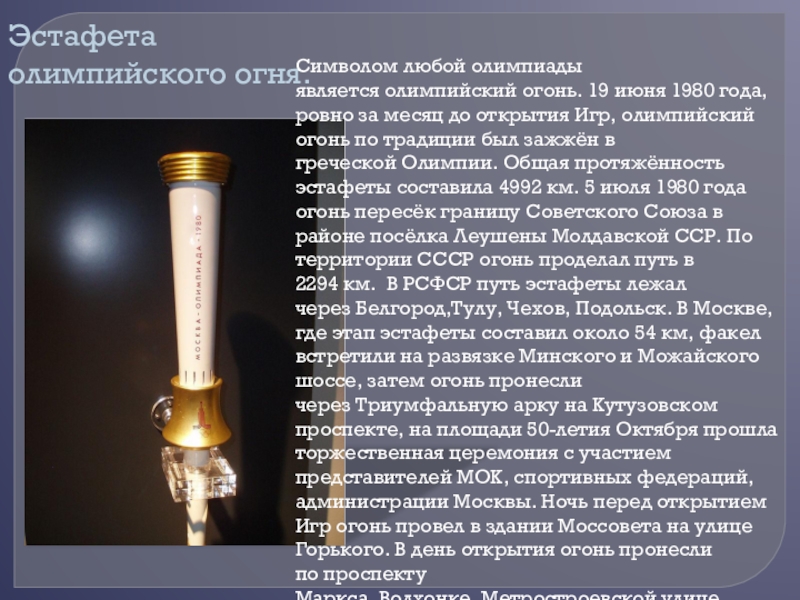 Символом любой олимпиады является олимпийский огонь. 19 июня 1980 года, ровно за