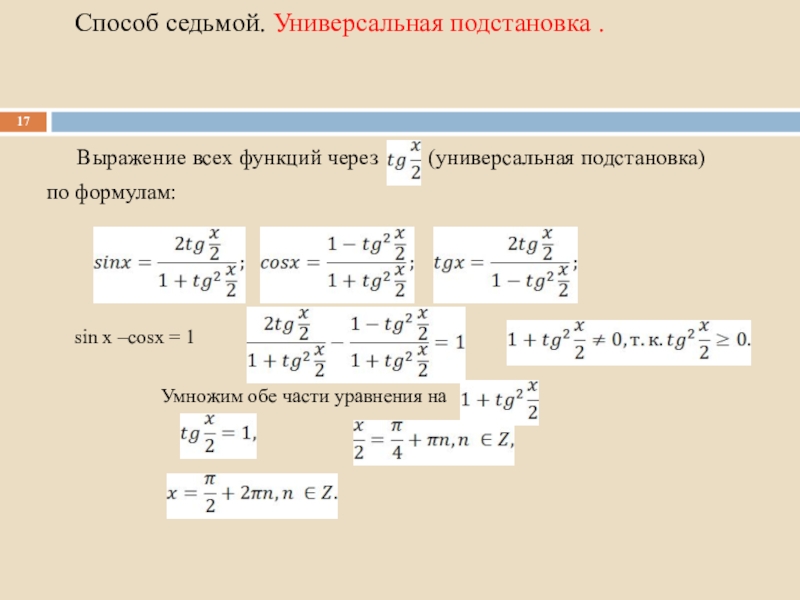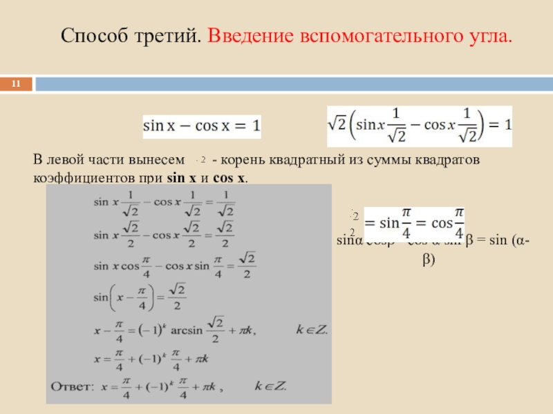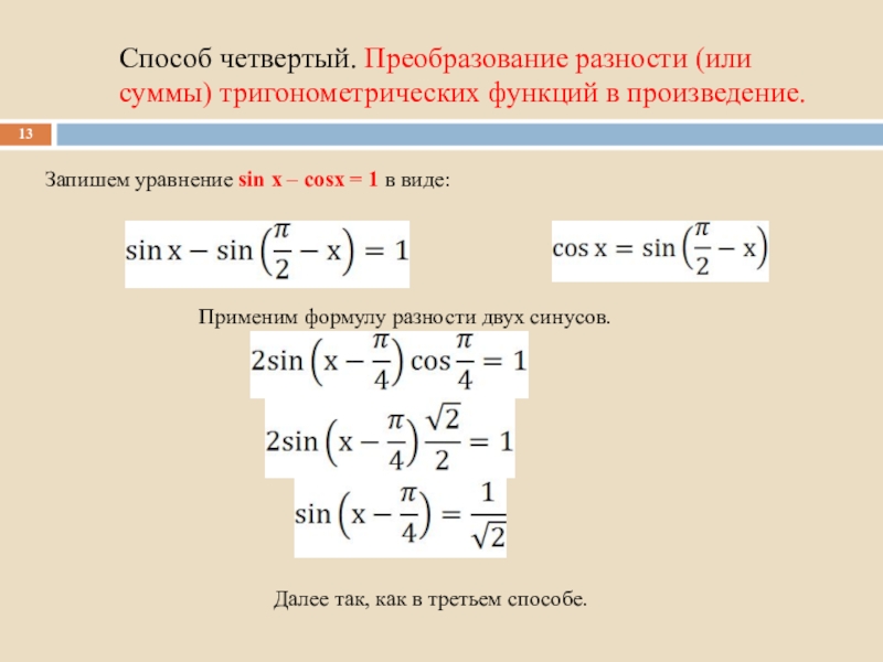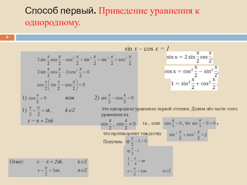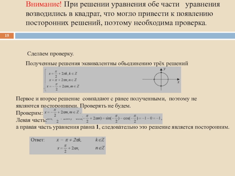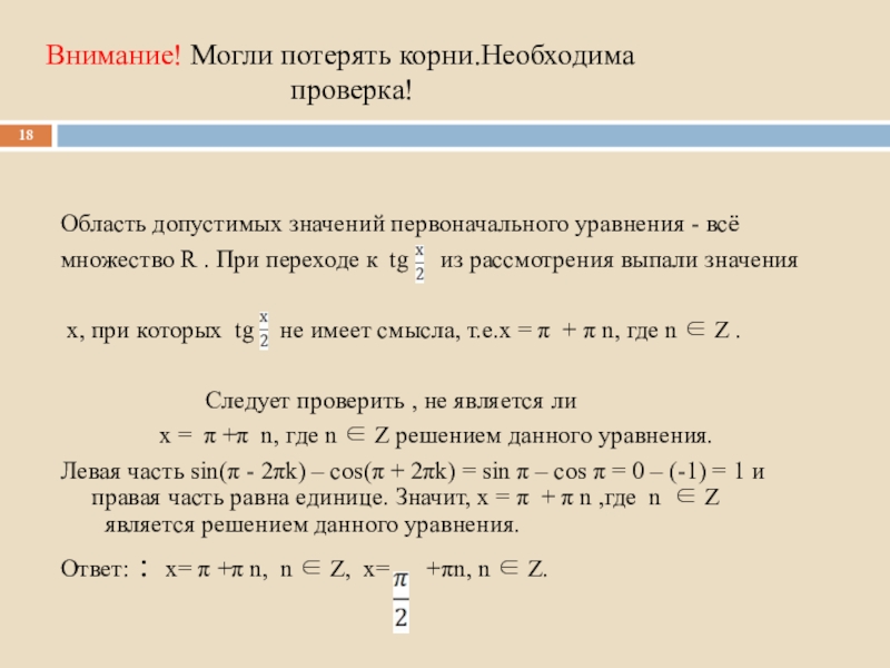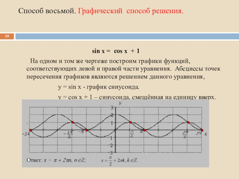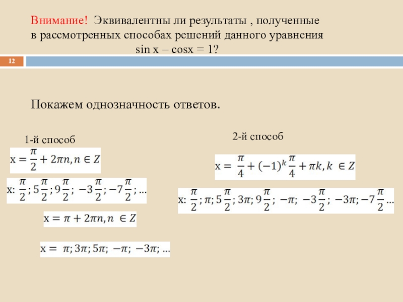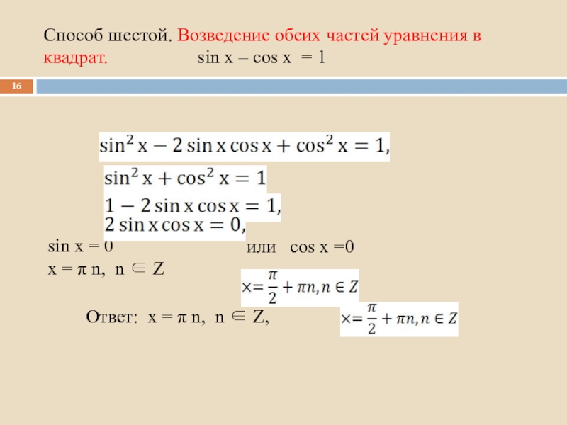 Ответ: : x= π +π n, n ∈ Z, x= +πn, n ∈ Z.