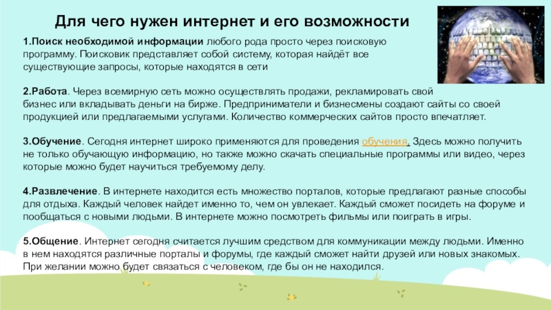 Слайд 2 Для чего нужен интернет и его возможности