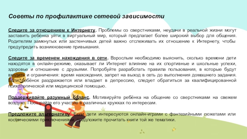 Слайд 10Советы по профилактике сетевой зависимости