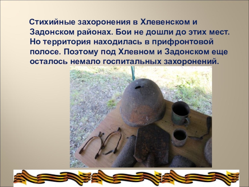 не дошли до этих мест. Но территория находилась в прифронтовой полосе. Поэтому под Хлевном и Задонском еще осталось немало госпитальных захоронений.