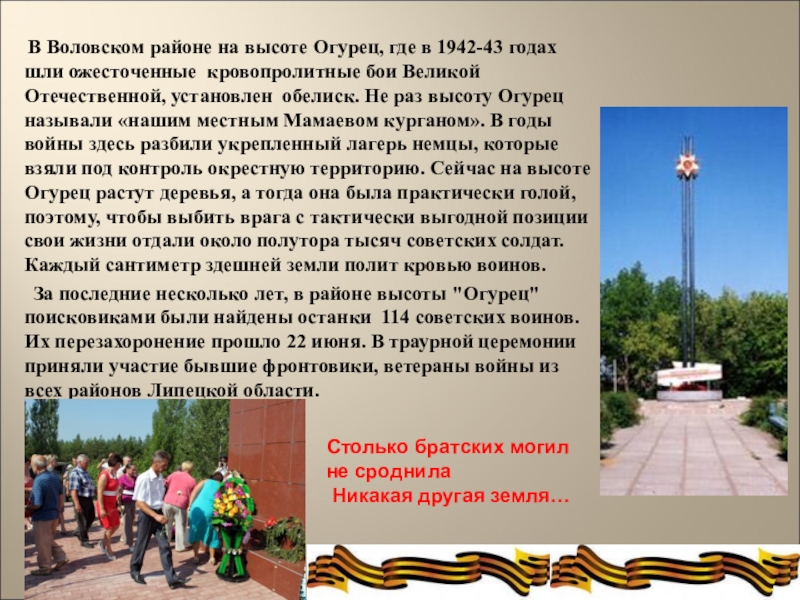 Слайд 8 В Воловском районе на высоте Огурец, где