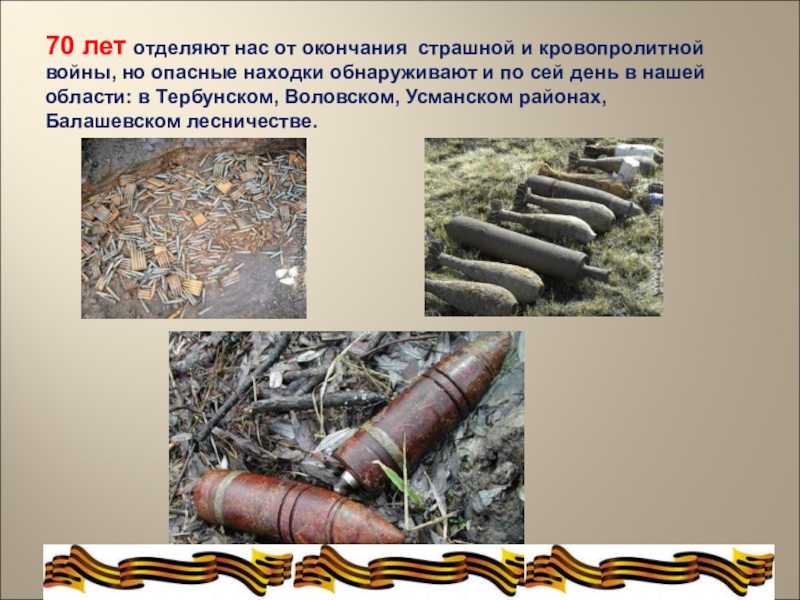опасные находки обнаруживают и по сей день в нашей области: в Тербунском, Воловском, Усманском районах, Балашевском лесничестве.