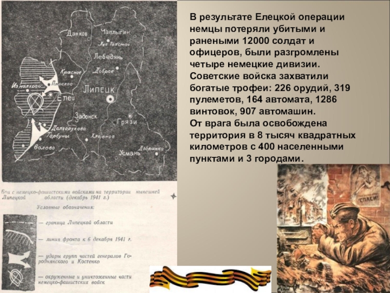 Слайд 6В результате Елецкой операции немцы потеряли убитыми и ранеными 12000 солдат