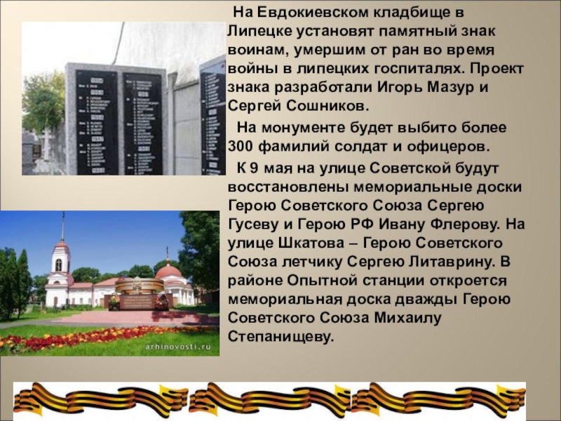 Слайд 33 На Евдокиевском кладбище в Липецке установят памятный