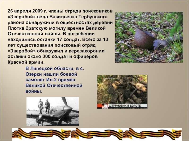 Слайд 35В Липецкой области, в с. Озерки нашли боевой самолёт Ил-2 времён
