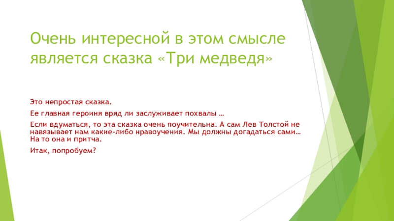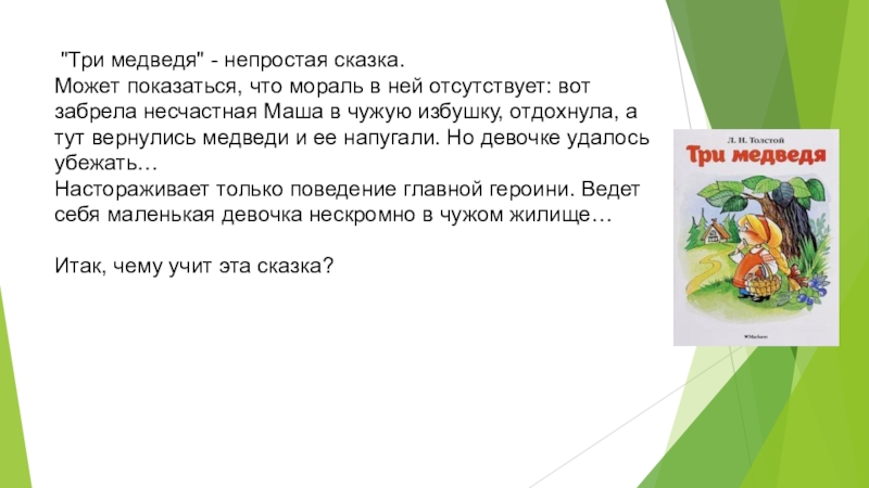 Слайд 27 "Три медведя" - непростая сказка. Может показаться, что мораль в