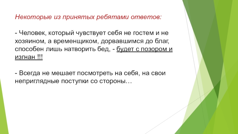 Слайд 28Некоторые из принятых ребятами ответов: - Человек, который чувствует себя не гостем