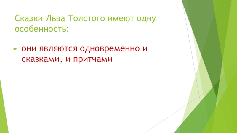 Слайд 3Сказки Льва Толстого имеют одну особенность: