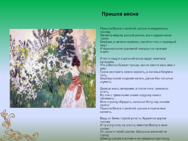 Слайд 1Литературная гостиная "ВЕСНА. ЛЮБОВЬ. ЖЕНЩИНА."