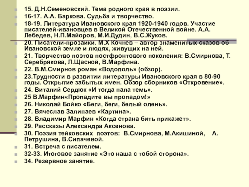 30. Поэзия тейковских поэтов: В.Смирнова, М.Акишиной, А.Петрушина, В.Сипачевой.
