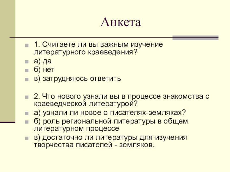 1. Считаете ли вы важным изучение литературного краеведения?