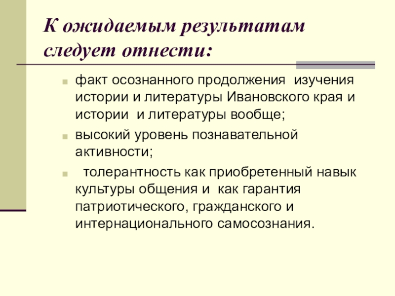 Слайд 10К ожидаемым результатам следует отнести: