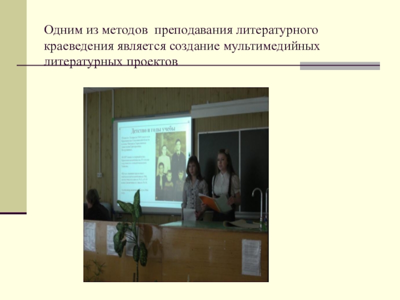 Одним из методов преподавания литературного краеведения является создание мультимедийных литературных проектов