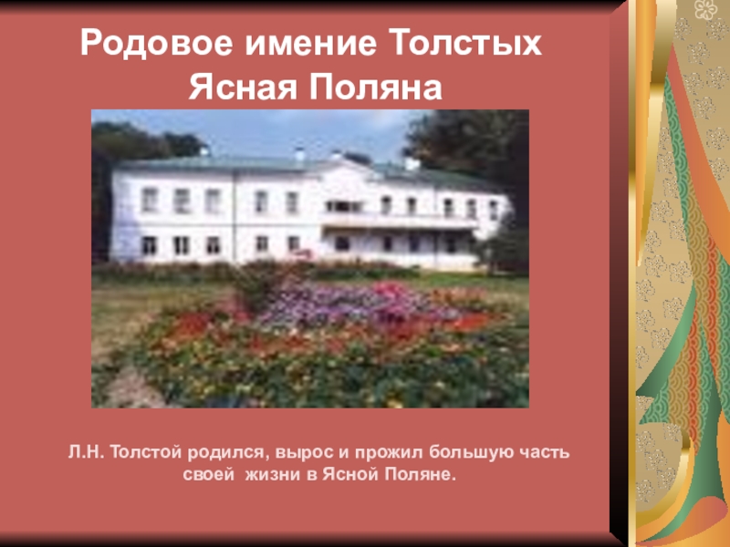 Слайд 4Родовое имение Толстых
