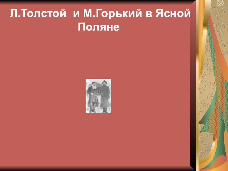 Слайд 11Л.Толстой и М.Горький в Ясной Поляне
