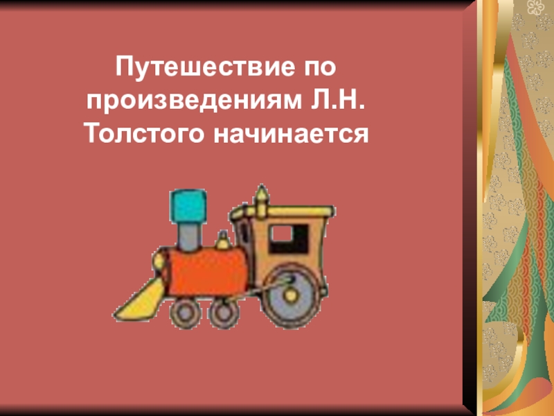 Слайд 15Путешествие по произведениям Л.Н.Толстого начинается