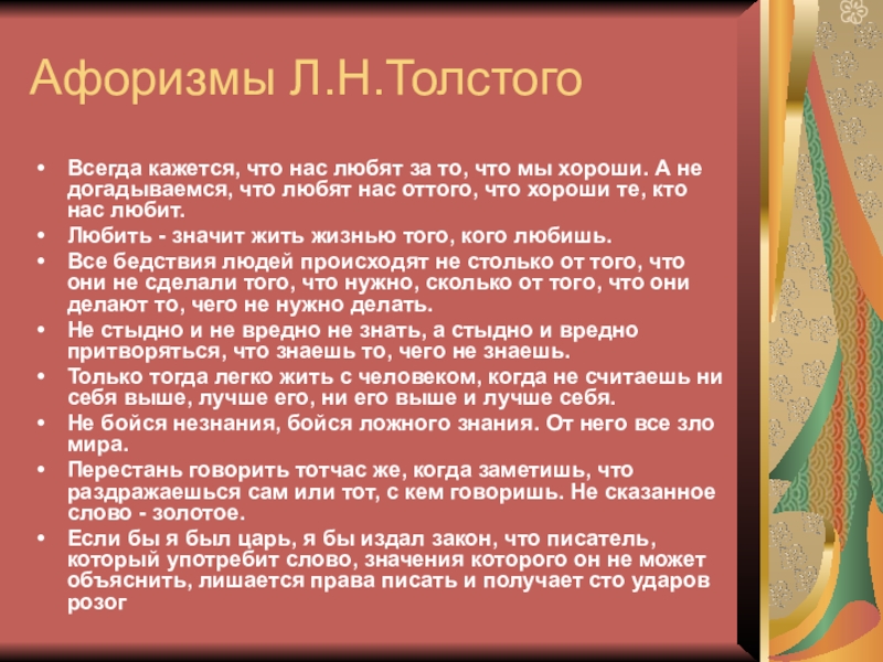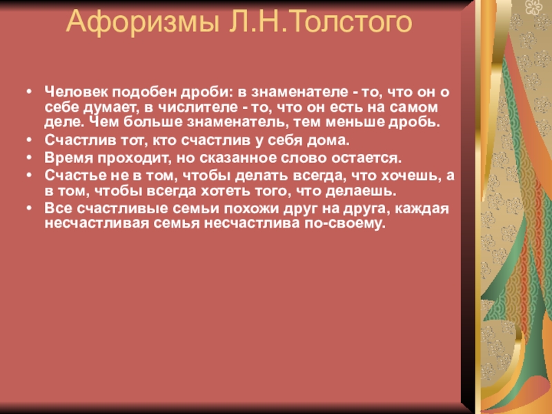 Слайд 20Афоризмы Л.Н.Толстого