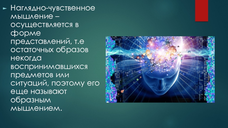 Слайд 19Наглядно-чувственное мышление – осуществляется в форме представлений, т.е остаточных образов некогда