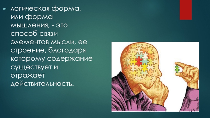 Слайд 12логическая форма, или форма мышления, - это способ связи элементов мысли,