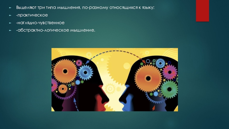 Слайд 15Выделяют три типа мышления, по-разному относящихся к языку: