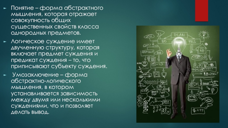 Слайд 23Понятие – форма абстрактного мышления, которая отражает совокупность общих существенных свойств