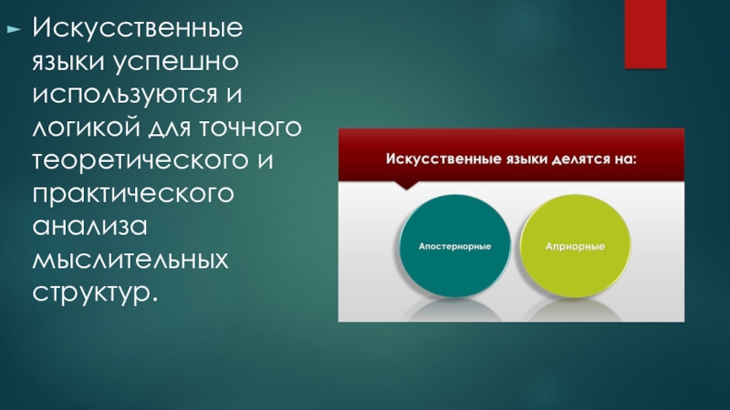 Слайд 9Искусственные языки успешно используются и логикой для точного теоретического и практического