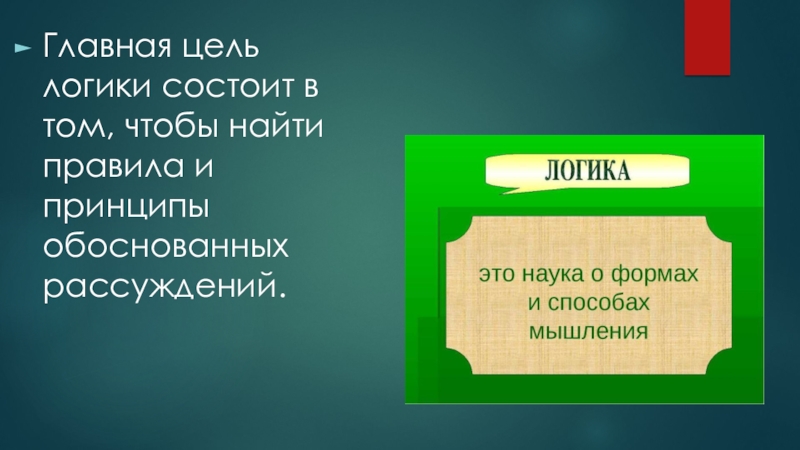 Слайд 2Главная цель логики состоит в том, чтобы найти правила и принципы