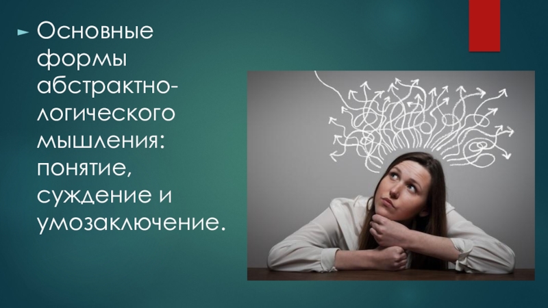 Слайд 22Основные формы абстрактно-логического мышления: понятие, суждение и умозаключение.