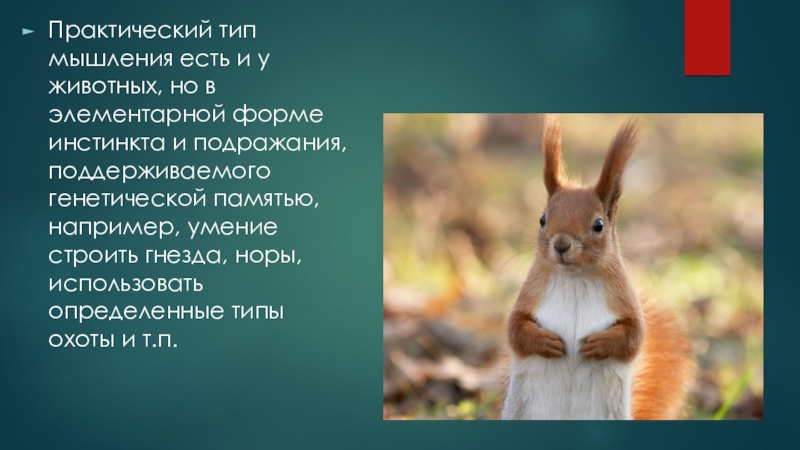 Слайд 17Практический тип мышления есть и у животных, но в элементарной форме
