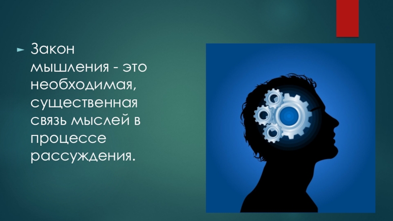 Слайд 13Закон мышления - это необходимая, существенная связь мыслей в процессе рассуждения.