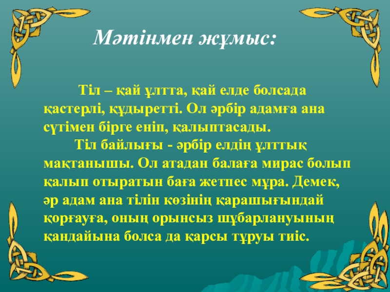 Қазақтың ұлттық ойындары, салт- дәстүрлері туралы білу.