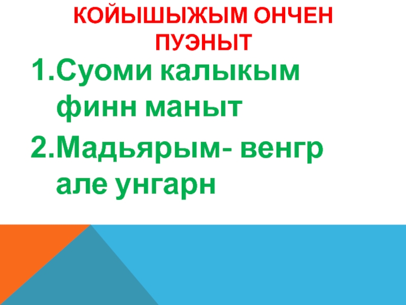 Койышыжым ончен пуэнытСуоми калыкым финн манытМадьярым- венгр але унгарн