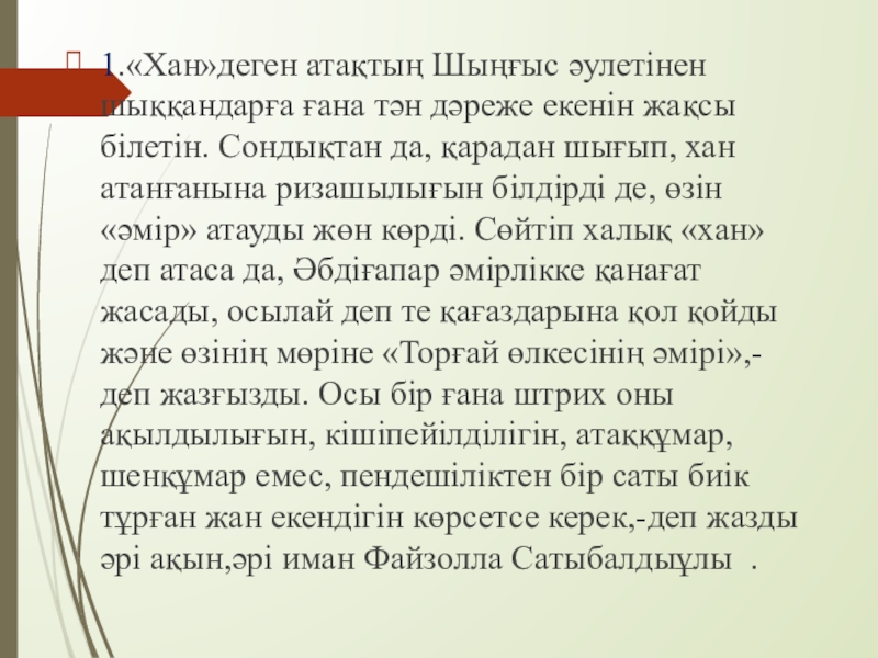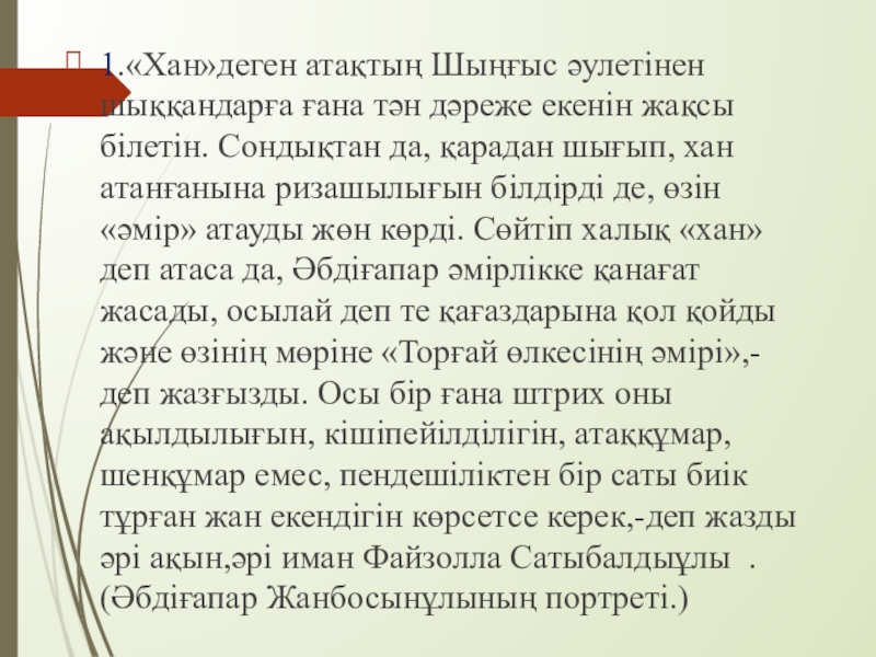 Слайд 201.«Хан»деген атақтың Шыңғыс әулетінен шыққандарға ғана тән дәреже екенін жақсы білетін.