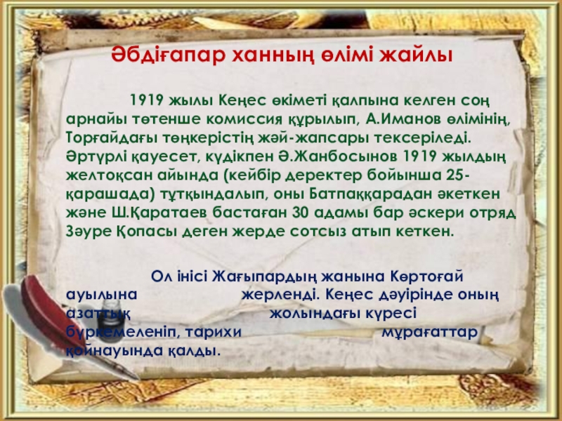 Слайд 24Әбдіғапар ханның өлімі жайлы
