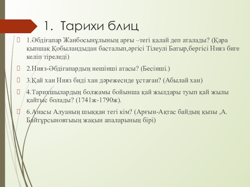 3.Қай хан Нияз биді хан дәрежеснде ұстаған? (Абылай хан)