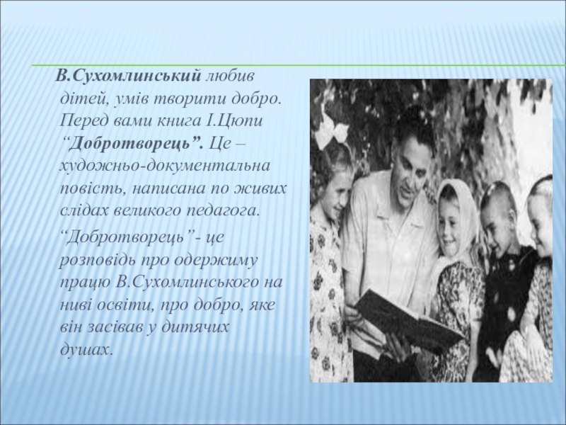 В.Сухомлинський любив дітей, умів творити добро. Перед вами книга