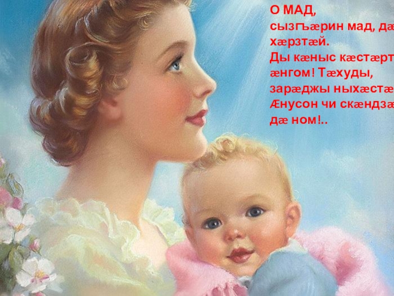 Слайд 3О МАД, сызгъæрин мад, дæ хæрзтæй.