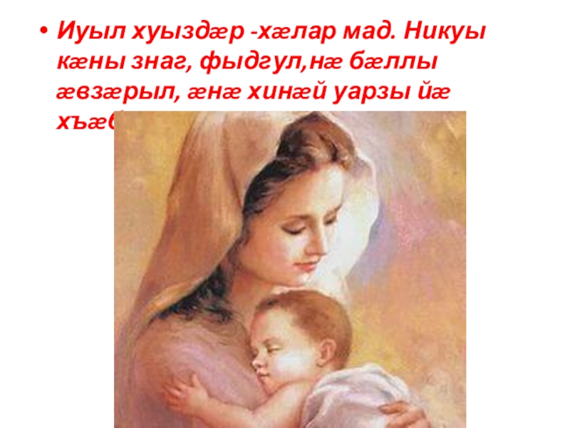 Слайд 5Иуыл хуыздæр -хæлар мад. Никуы кæны знаг, фыдгул,нæ бæллы æвзæрыл, æнæ