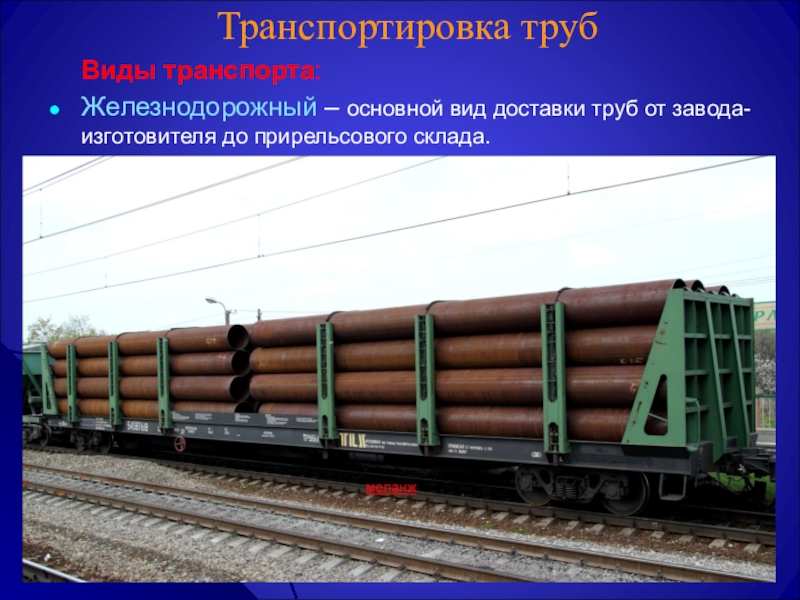 В процессе транспортировки ж/д вагонами необходимо использовать подкладки, отделяющие трубы от металлического дна.