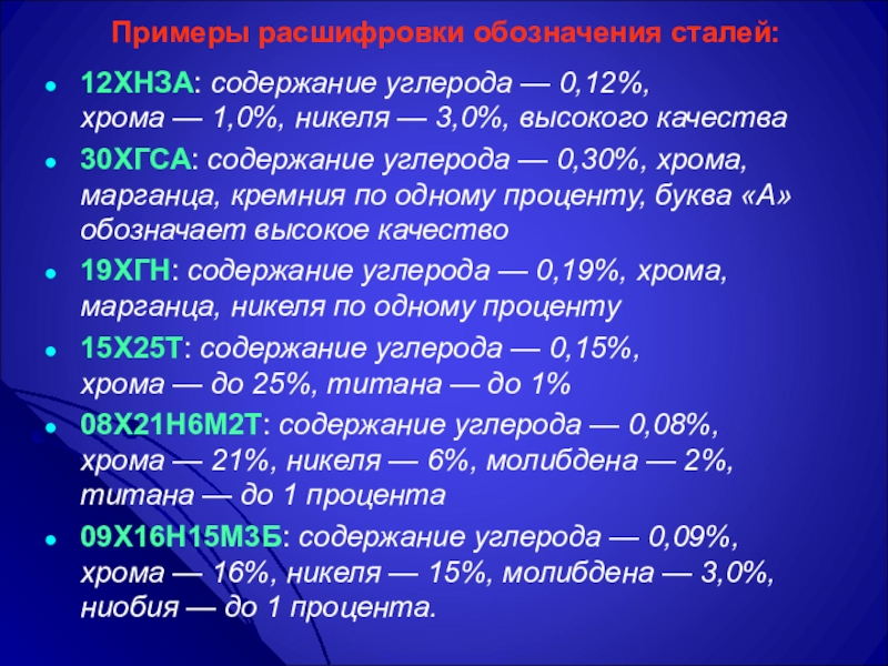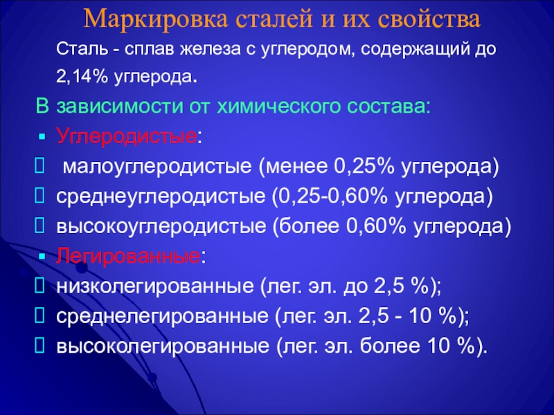 среднелегированные (лег. эл. 2,5 - 10 %);