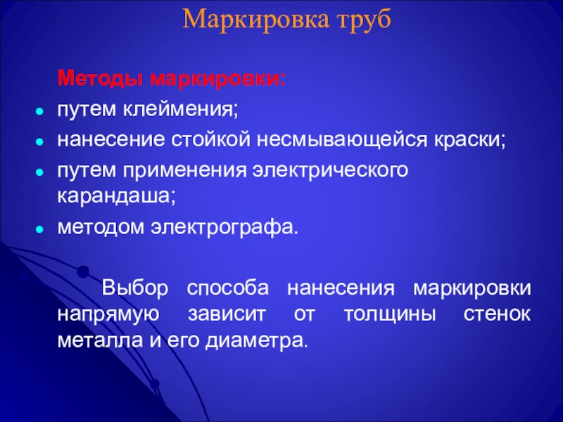 Выбор способа нанесения маркировки напрямую зависит от толщины стенок металла и его диаметра.