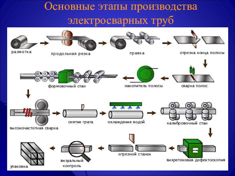 Затем готовая круглая стальная труба остужается, режется по длине и отправляется на склад готовой продукции.