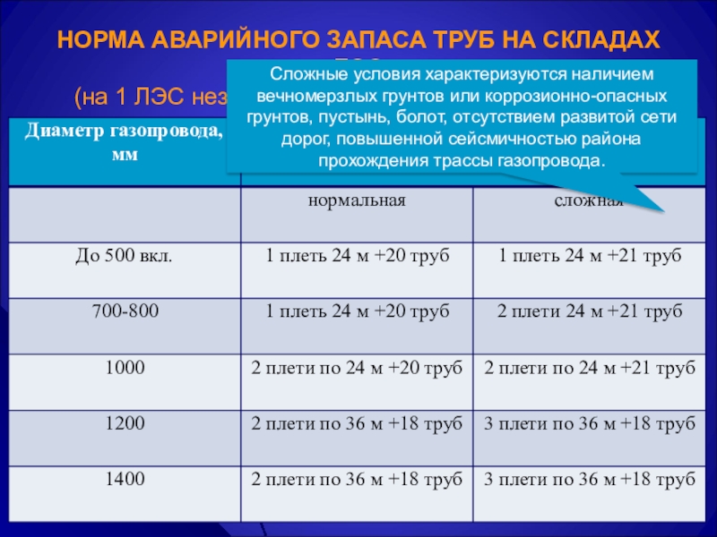 Слайд 53НОРМА АВАРИЙНОГО ЗАПАСА ТРУБ НА СКЛАДАХ ЛЭС