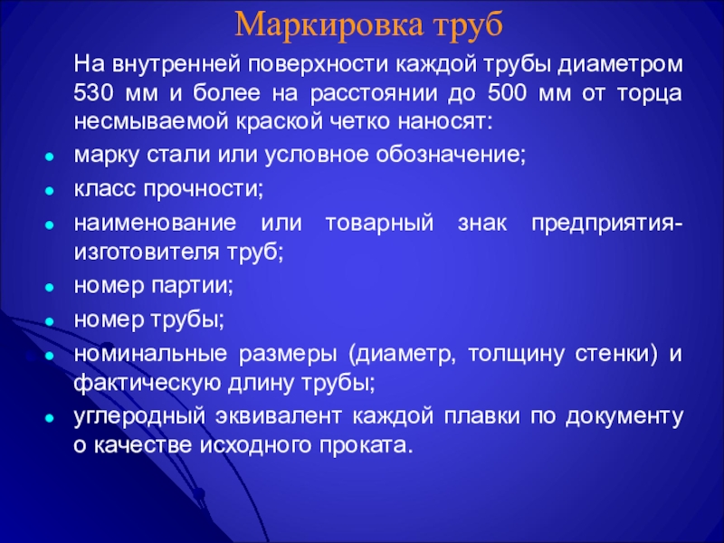При механизированном методе маркировку располагают вдоль трубы на расстоянии не более 1500 мм от торца.