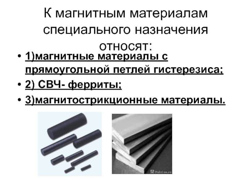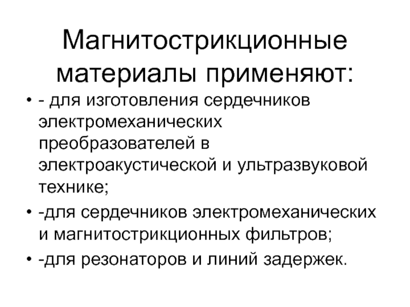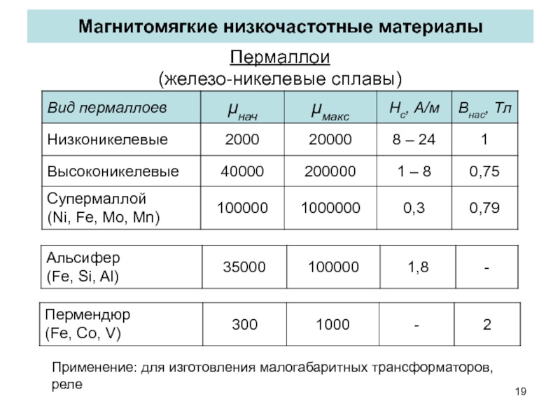 Применение: магнитопроводы, работающие в постоянном поле