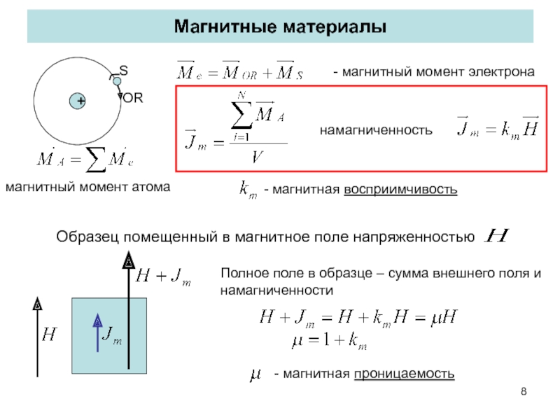 - магнитная индукция внутри образца