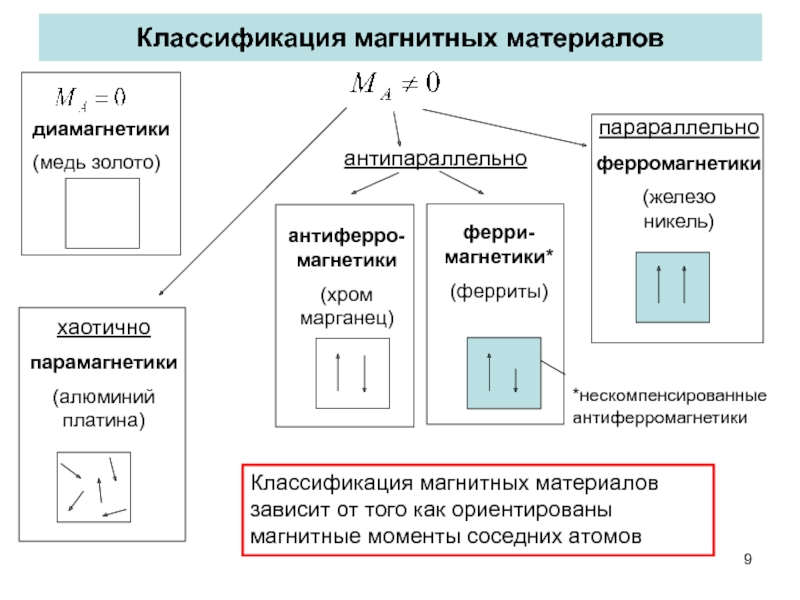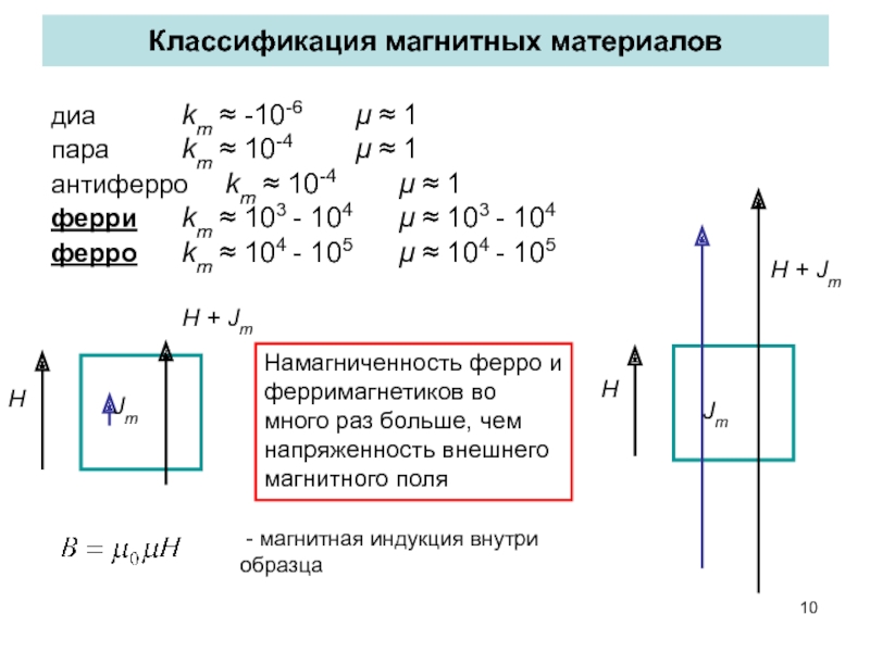 антиферро km ≈ 10-4 μ ≈ 1